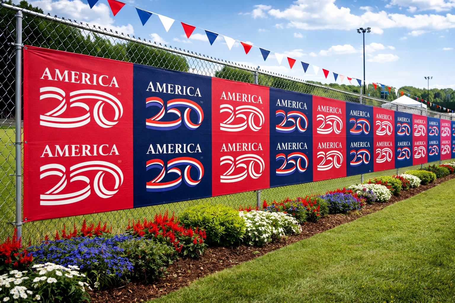 Our grand format printers offer seamless vinyl and mesh banners up to 16 feet using high quality, durable, and fade-resistant inks. All America250™ banners can be made to your size specifications with multiple finishing options available.